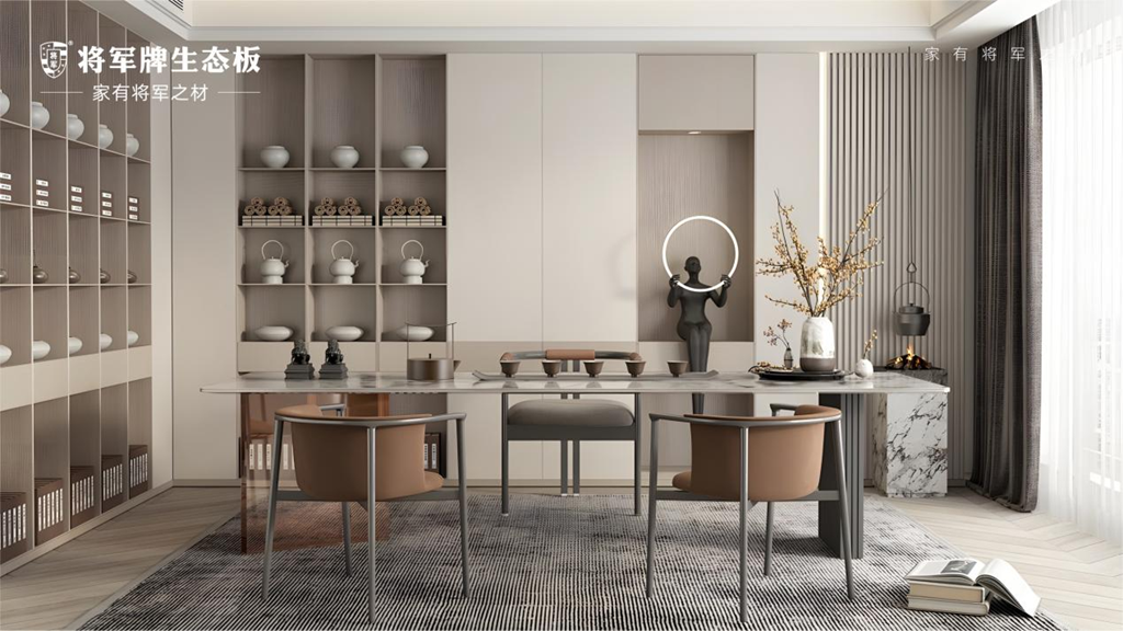 選擇將軍牌生態板,便是選擇了一種與時光溫柔相處的方式。在這里,每一道木紋都在生長,每一處弧度都在沉淀,最終成就的,是一個在歲月里慢慢暈染出生活溫度,卻始終保持著初見時那份整潔與雅致的家——這,便是長期主義美學最本真的模樣。